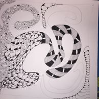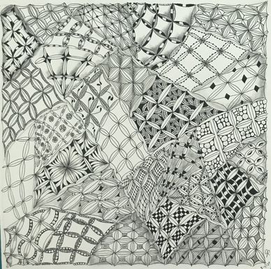 Just as if we were tangling on a 3.5" square tile, but instead drew the patterns much bigger. Two hour class. Gilded Matilda's.