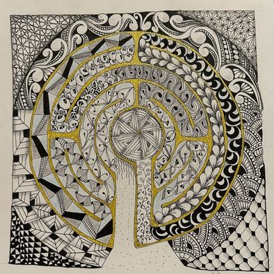 Labyrinth Zentangle class with Trish O'Leary, CZT at The Enrichment Academy at The Villages, Fl. I finished it on my own filling in all the spaces.