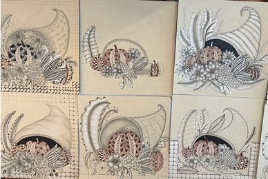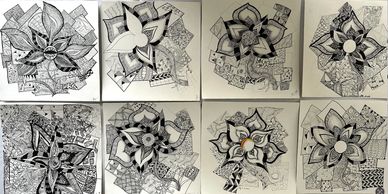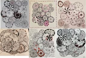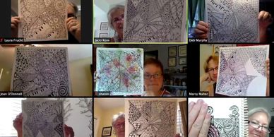 Full day of tangling on the Oous Tile at the Waterfront Inn, The Villages, FL with 4 CZTs teaching.